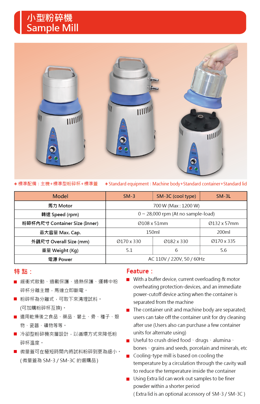 3、粉碎杯為分離式,可取下來清理試料,可加購粉碎杯互換。